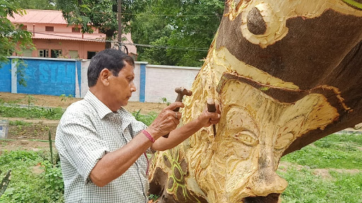 सूखे पेड़ों में अपनी कला से जीवन दे रहे श्रीकुमार