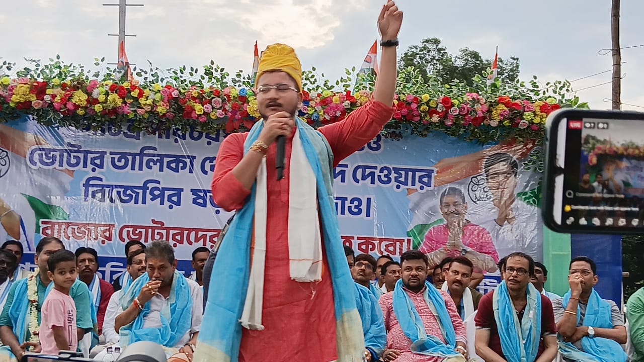 দেবাংশু শুভেন্দুর ‘জয় বাংলা’ শুনলে রেগে যাওয়ার প্রসঙ্গ তুলে ধরে বলেন, বিরোধী দলনেতা জয় বাংলা শুনে খেপা ষাঁড়ের মতো তাড়া করে । ২৬ এর নির্বাচনে তৃণমুলকে ভোট দেওয়ার এবং সরকারে আনার আবেদন করে বলেন বিজেপিকে ভোট দিয়েছেন তো আপনার বাংলার মাটি যাবে। সঙ্গে ঘরও যাবে । এরপরে অসমের এনআর সির প্রসঙ্গ তুলে তিনি বলেন, ওরা হিন্দু বোঝে না। তাহলে হিন্দুদের নাম এনআর সির ফলে বাদ যেত না।