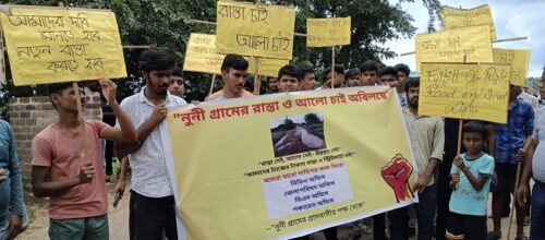 বেঙ্গল মিরর, বারাবনি, রাজা বন্দোপাধ্যায়ঃ* আসানসোলের বারাবানি বিধানসভার নুনি গ্রামের বাসিন্দারা রাস্তা সারাই, স্ট্রিট লাইট বা রাস্তার আলো ও পানীয়জলের দাবিতে সোমবার বিক্ষোভ মিছিল করেন। পরে রাস্তা অবরোধও করা হয়। খবর পেয়ে আসানসোল উত্তর থানার পুলিশ এলাকায় আসে। নুনি গ্রাম পঞ্চায়েতের প্রধান মাধব তিওয়ারিরও সেখানে আসেন। তাকে ঘিরে এলাকার বাসিন্দারা বিক্ষোভও দেখান। গ্রাম পঞ্চায়েত প্রধানকে এলাকার বাসিন্দাদের তরফে তিনটি দাবির একটি স্মারক লিপি দেওয়া হয়। এদিন দীর্ঘক্ষণ ধরে প্রতিবাদ করা নুনি গ্রামের বাসিন্দারা বলেন, এই এলাকার বিদ্যুৎ, জল এবং রাস্তাঘাটের অবস্থা খুবই খারাপ। যে কারণে এখানকার মানুষদেরকে অনেক সমস্যার সম্মুখীন হতে হচ্ছে। এই এলাকার রাস্তার অবস্থা এতটাই খারাপ যে প্রতিদিন ছোট ছোট দুর্ঘটনা ঘটে। যে কোনও সময় বড় দুর্ঘটনা ঘটতে পারে। যাতে কেউ প্রাণ হারাতে পারেন।