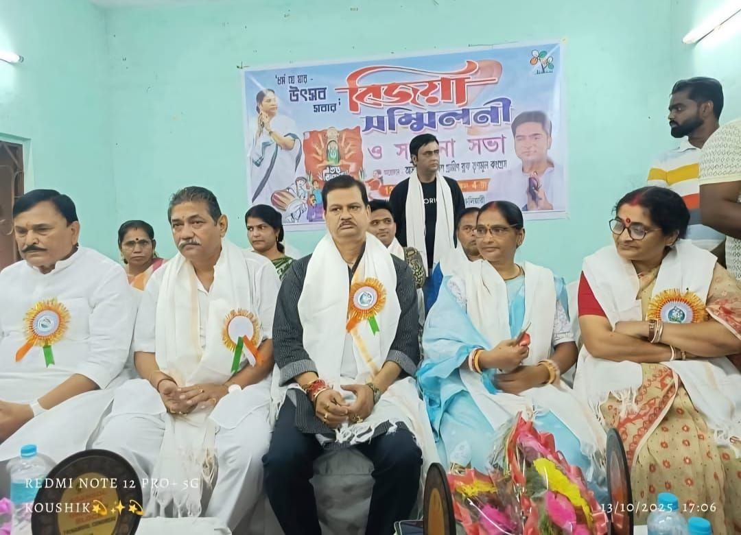 বেঙ্গল মিরর, রানীগঞ্জ : নিমচা মুর্গাথলে তৃণমূল কংগ্রেসের বিজয় সম্মেলন, জেলা সভাপতির নিশানা বিজেপি বিধায়কের দিকেআসানসোল দক্ষিণ গ্রামীণ ব্লকের পক্ষ থেকে রবিবার নিমচা মুর্গাথলে এক বর্ণাঢ্য বিজয় সম্মেলনের আয়োজন করা হয়। এই অনুষ্ঠানে উপস্থিত ছিলেন তৃণমূল কংগ্রেসের জেলা সভাপতি সহ বিধায়ক নরেন্দ্রনাথ চক্রবর্তী, জেলা চেয়ারম্যান সহ বিধায়ক হরেরাম সিং, আসানসোল দক্ষিণ গ্রামীণ অবজারভার অভিজিৎ ঘটক, জেলা পরিষদ সভাপতি বিশ্বনাথ বাউরি, জেলা মহিলা তৃণমূল কংগ্রেস সভানেত্রী অসীমা চক্রবর্তী, ব্লক সভাপতি দেবনারায়ণ দাস, সহ-সভাপতি সায়ন্তন মুখোপাধ্যায় ও অর্জুন সিং এবং মহিলা ব্লক সভানেত্রী সমাপ্তি পান্জা, সহ বহু নেতাকর্মী।অনুষ্ঠানের সময় আসানসোল দক্ষিণ গ্রামীণ এলাকার সকল পঞ্চায়েতের কর্মীদের তাদের কাজের জন্য সম্মানিত করা হয়।