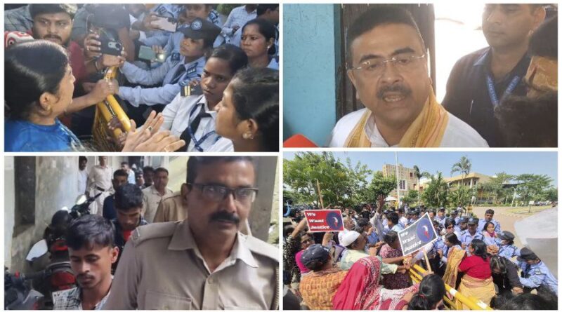 घटना ने राज्य में राजनीतिक माहौल को और गर्म कर दिया। विपक्ष के नेता शुभेंदु अधिकारी ने सोमवार को सिटी सेंटर, दुर्गापुर में बीजेपी की ओर से आयोजित धरना प्रदर्शन में हिस्सा लिया। उन्होंने ‘कन्या बचाओ, ममता हटाओ!’ का नारा लगाते हुए ममता बनर्जी सरकार पर महिलाओं की सुरक्षा और कानून-व्यवस्था की विफलता का आरोप लगाया। उन्होंने दोषियों के लिए फांसी की सजा की मांग की और ‘स्वैराचारी हिंदू विरोधी ममता सरकार’ के खिलाफ जमकर निशाना साधा। धरने से पहले शुभेंदु ने पीड़िता के पिता से भी मुलाकात की। बीजेपी नेताओं ने आरोप लगाया कि शुभेंदु के पहुंचने से ठीक पहले पुलिस ने ‘कोई अनुमति नहीं’ का हवाला देकर धरना मंच को हटाने का दबाव बनाया, जिससे स्थानीय प्रशासन और बीजेपी कार्यकर्ताओं के बीच तनाव बढ़ गया।