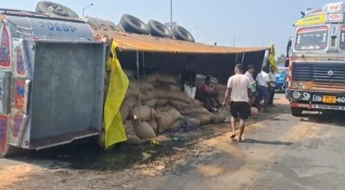কুলটিতে জাতীয় সড়কে নিয়ন্ত্রণ হারিয়ে উল্টালো গম বোঝাই ট্রাক