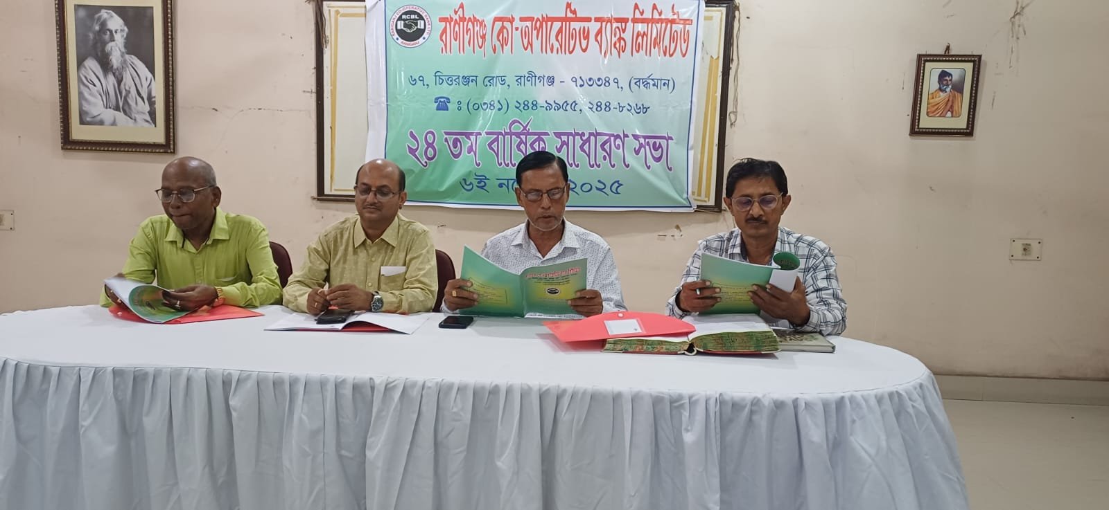 बंगाल मिरर, रानीगंज: रानीगंज कोऑपरेटिव बैंक लिमिटेड के 23 वी वार्षिक साधारण सभा कोऑपरेटिव बैंक के द्वितीय तल्ले स्थित कॉन्फ्रेंस हॉल में आयोजित की गई जिसमें बैंक के सभी डायरेक्टर के अलावा सभी डेलीगेट ने भाग लिया ।सभा की अध्यक्षता बैंक के चेयरमैन श्री उज्जवल मंडल ने की जबकि अन्य उपस्थित व्यक्तियों में बैंक के वाइस चेयरमैन श्री संदीप भालोटीया श्री प्रदीप नंदी , बैंक के मैनेजर श्री सुब्रतो के अलावा श्री सपन कर, मोहम्मद जाकिर, श्री अशोक सिंह श्री गोपाल केसरी, डॉक्टर लगी नारायण दास , माला राय पाल,श्री शांतनु भगत एवं अन्य डेलीगेट उपस्थित थे।