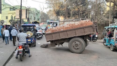 রানিগঞ্জে রাস্তায় ইট বোঝাই ট্রাক্টরের এক্সেল ভেঙে বিপত্তি, বড় দূর্ঘটনা থেকে রক্ষা, ব্যাহত যান চলাচল