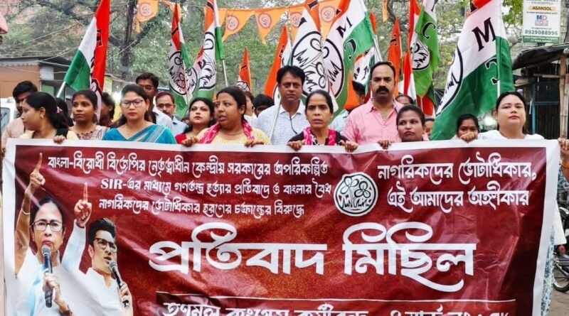 বার্নপুরে তৃণমূলের প্রতিবাদ মিছিল, অপরিকল্পিত এসআইআর ও কেন্দ্রীয় সরকারের বিরোধিতা