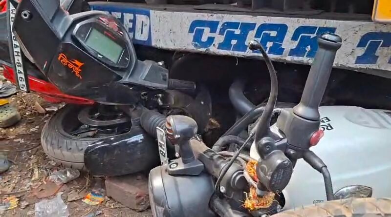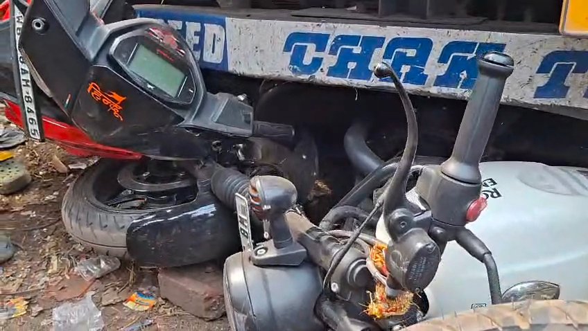 নিয়ন্ত্রণহীন ডাম্পার একটি স্করপিও ও এরপর পরপর তিনটি বাইককে মারল ধাক্কা