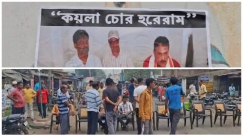 জামুড়িয়ায় তৃণমূল প্রার্থীর নামে ‘ চোর” লেখা পোস্টারে চাঞ্চল্য, রাস্তা অবরোধ, বিক্ষোভ