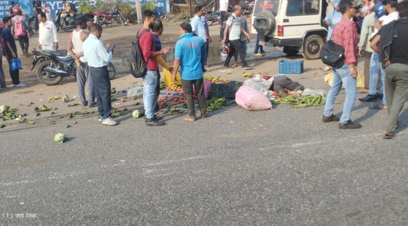 बंगाल मिरर, अंडाल : Andal Airport मोड़ के सामने राष्ट्रीय राजमार्ग 19 पर सोमवार सुबह करीब साढ़े सात बजे एक दर्दनाक सड़क दुर्घटना हो गई। यह हादसा उस समय हुआ जब सब्जी से लदा एक पिकअप वैन Sen Market से अंडाल की ओर आ रहा था।मिली जानकारी के अनुसार, रोज की तरह सब्जी विक्रेता दुर्गापुर से सब्जियां खरीदकर अंडाल में बेचने के लिए लौट रहे थे, तभी अचानक वाहन दुर्घटनाग्रस्त हो गया। इस हादसे में वाहन में सवार एक सब्जी विक्रेता की मौके पर ही मौत हो गई, जबकि अन्य कई लोग घायल हो गए। घायलों को हल्की चोटें आई हैं।