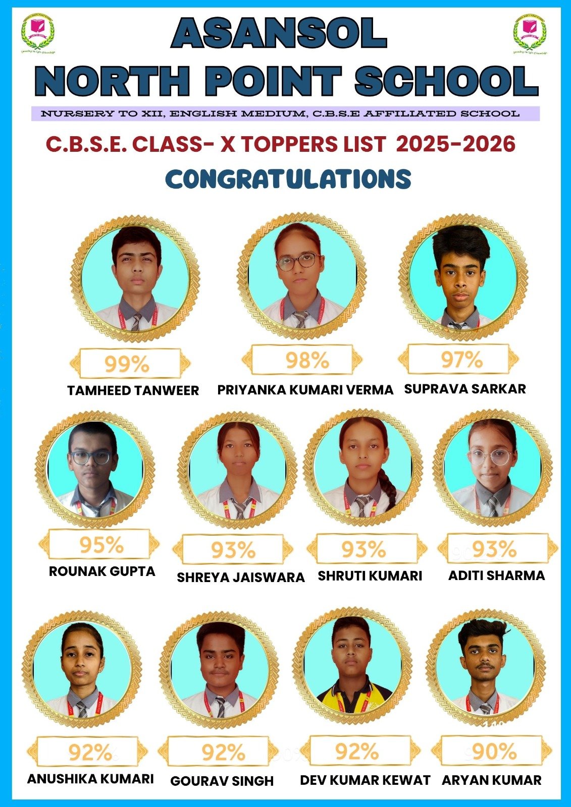 Asansol North Point School के छात्रों की सीबीएसई 10 वीं परीक्षा में शानदार सफलता, तामहीद तनवीर 99 प्रतिशत के साथ टॉपर