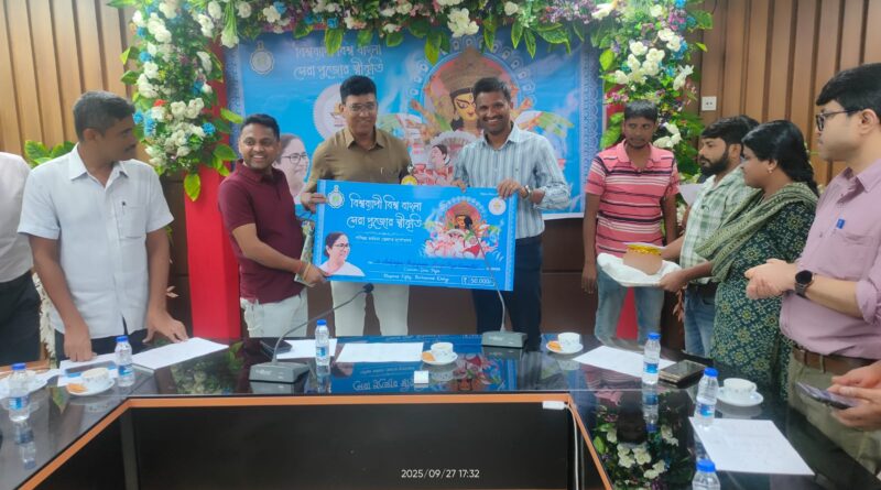 Read MoreSharad Samman 2025 : জেলার সেরা আসানসোলের আপকার গার্ডেন দুর্গাপূজো কমিটি, দুর্গাপুরের চতুরঙ্গ পুজো কমিটি ও শঙ্করপুর সার্বজনীন দুর্গাপূজো কমিটি, ১২ টি পুজো কমিটিকে পুরষ্কার